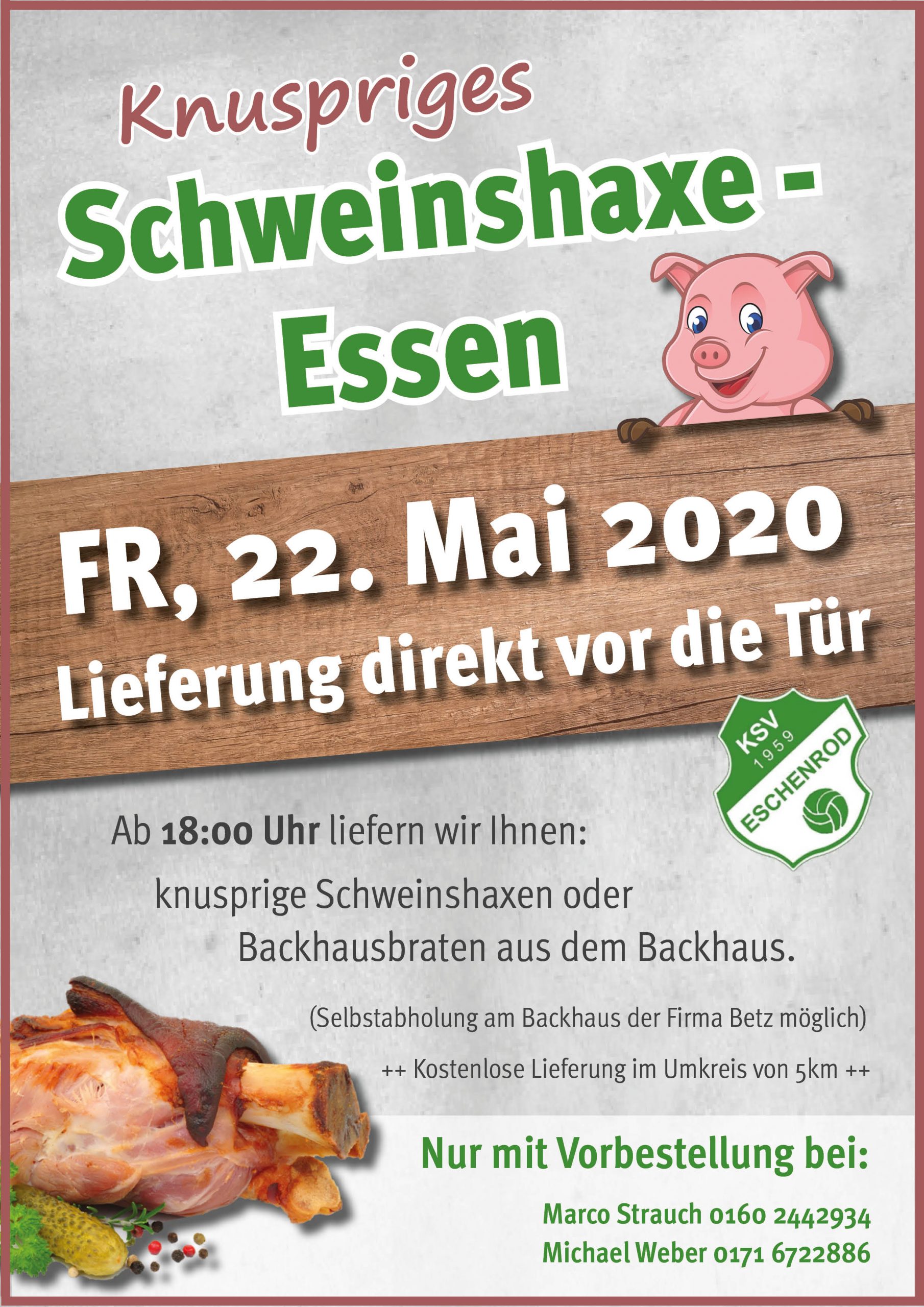 Knuspriges Schweinshaxe-Essen am Freitag, den 22. Mai.